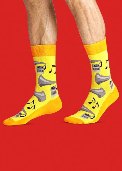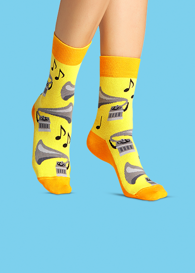 Носки с музыкой — отличный выбор для тех, кто живёт в ритме любимых мелодий. Ноты, гитары, виниловые пластинки, наушники и другие музыкальные символы превращают обычные цветные носки в стильный аксессуар с характером. Такие модели добавляют образу динамику, настроение и творческую энергию.