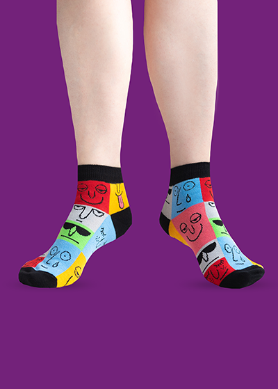 Лучше всего такие носки сочетаются с однотонной одеждой: джинсами, чиносами, футболками, худи и кедами. Яркий принт становится акцентом образа и помогает подчеркнуть индивидуальный стиль. Носки с театральными и цирковыми мотивами отлично вписываются в casual и креативный городской стиль.