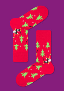 Носки «Бык приходит в год» - просто огонь! Зеленые ёлки, а среди них развеселый бычок готовится ворваться в новый 2021й, мы ждем от него только хорошего. Смелые и яркие цветные носки не дадут вам заскучать.