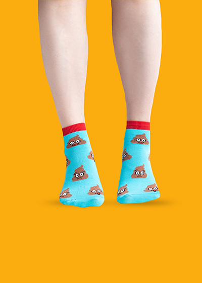 В мире носков всегда находится место для эксцентричности. На витрине магазина FunnySocks появились носки с красочным названием "Какаш". Главной особенностью этих носков является их голубой цвет и изображения разнообразных эмодзи "какашек" на них. Они выражают самые разные настроения: от радости до грусти, от удивления до раздражения.