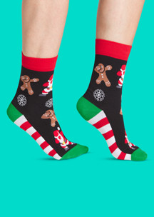 Цветные носки с Санта-Клаусом — разве может быть что-то более новогоднее? «Пестрота, разгул, волненье, ожиданье, нетерпенье… Веселится и ликует весь народ», — вот что изображает их принт.