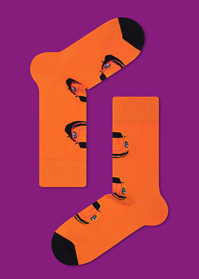 На ярко-оранжевом фоне нарисованы божественной красоты машинки — ах, это просто волшебство, а не носки. В таких, конечно, можно отправиться и в пир, и в мир, и в добрые люди! В цветных носках «Порше - машина мечты» вы будете звездой всех вечеринок, настоящей иконой стиля, на ваш лук все будут молиться, копировать его и множить. Вот такой бесподобной притягательностью обладают эти цветные носки с тачкой мечты.