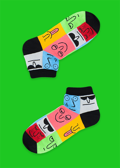 Встречайте яркие и выразительные носки "Власть" - настоящее воплощение советской символики! Эти бежевые носки украшены забавными иллюстрациями, представляющими атрибуты былой эпохи.