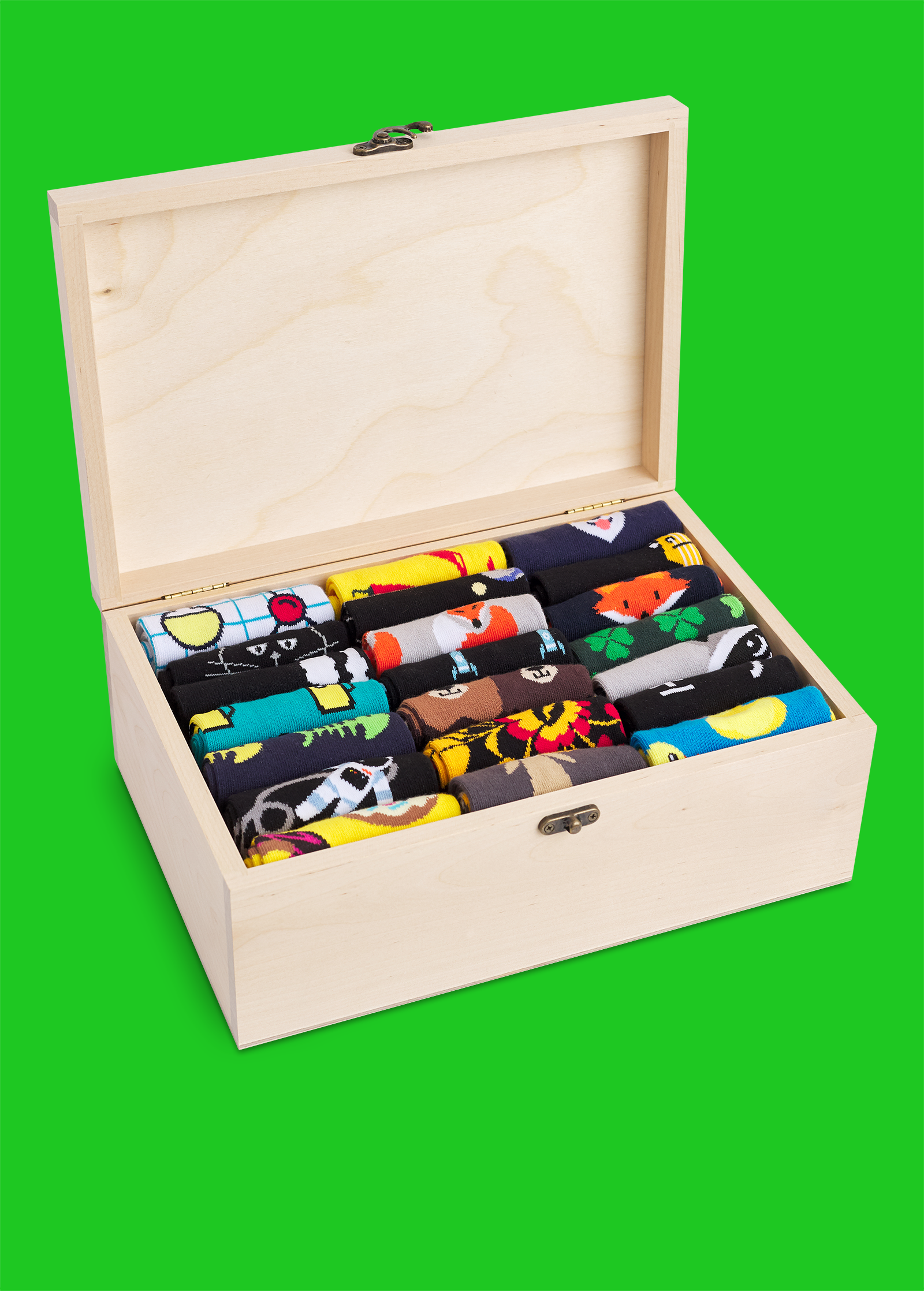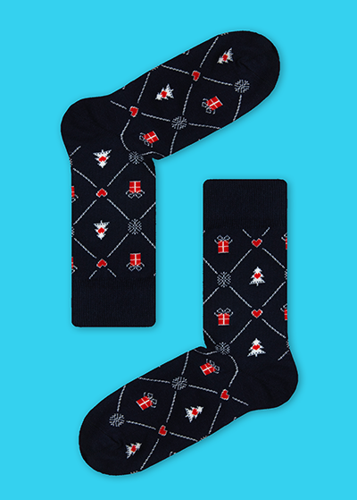 Вы можете выбрать готовый подарочный набор в красивой коробке. Плюсы готового набора в том, что вам не придется тратить время на подбор носков. Это уже сделали для вас профессионалы-дизайнеры. Другим жирным плюсом является цена набора — она ниже, чем цена трех отдельных носков. То есть можно купить подарочный набор недорого, и он, тем не менее, будет красивым, достойным и высокого качества.